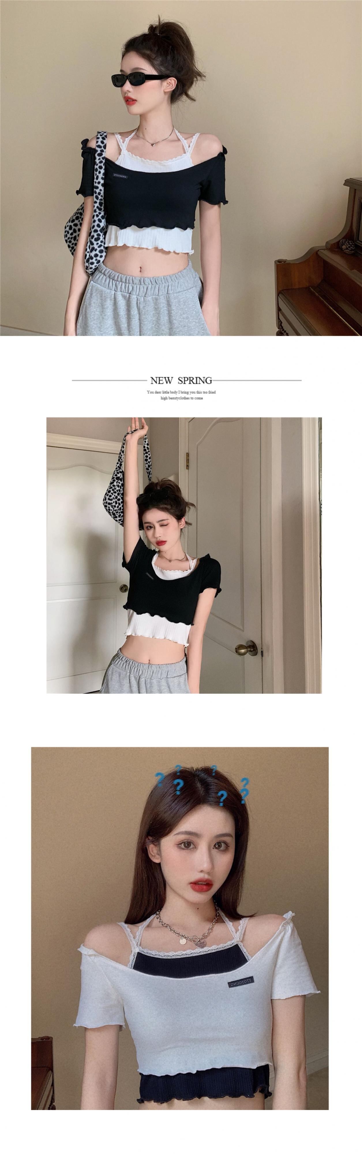 ワンショルダー半袖トップ夏ウエスタンショートへそタイトピンクTシャツins tide new 2020 ブラックストロベリース38464895219