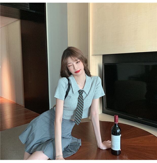 スタイルjkユニムシャツプリーツスカートツーピース女性の夏2020新しいスカートウエスタンスタイルスーツ ブラックストロベリース73140666812
