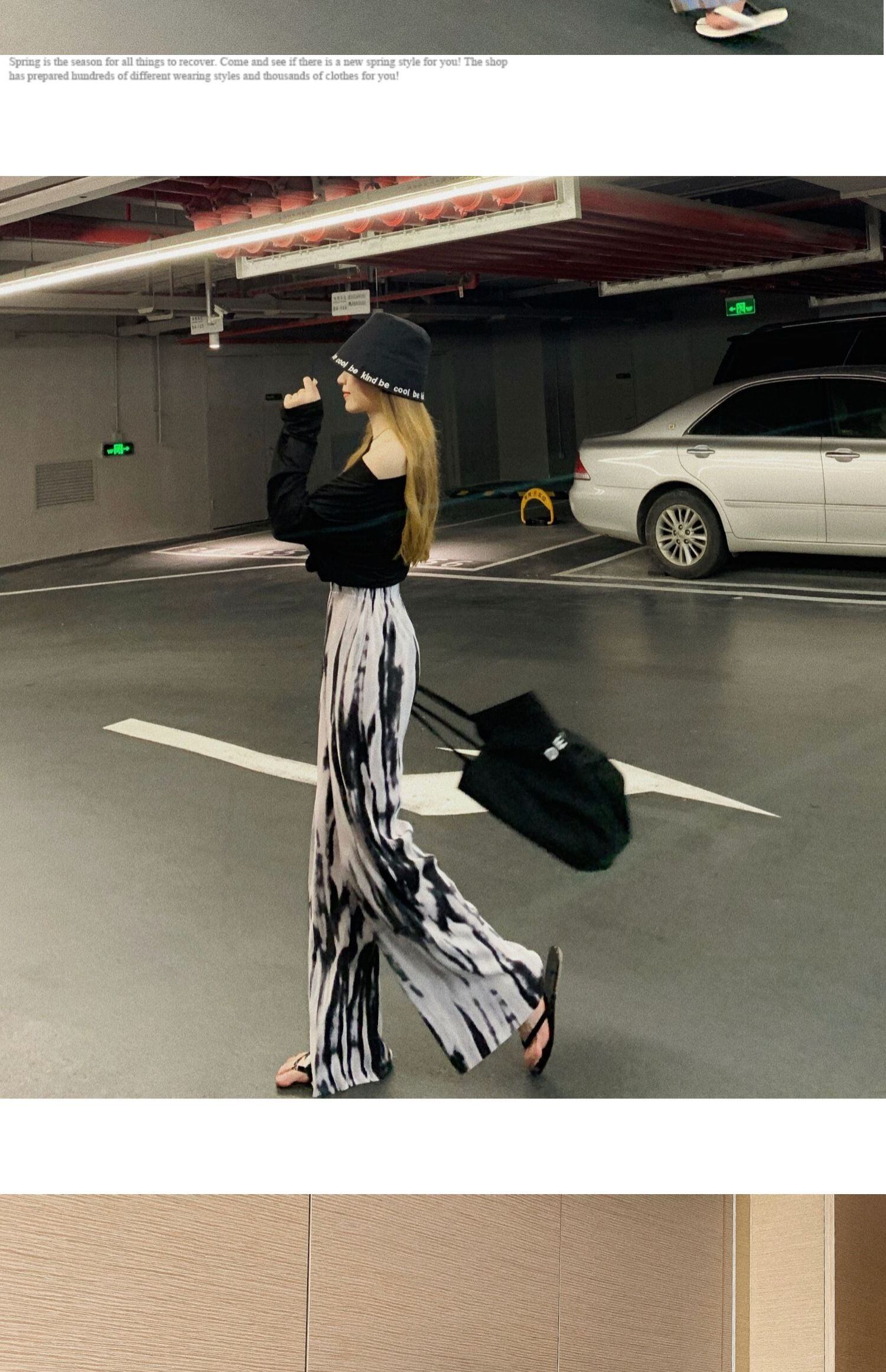 ストレートブラックタイダイルーズカジュアルパンツ女性の夏の薄いハイウエストドレープワイドレッグパンツ2020新しいパンツ ブラックストロベリース85429402863
