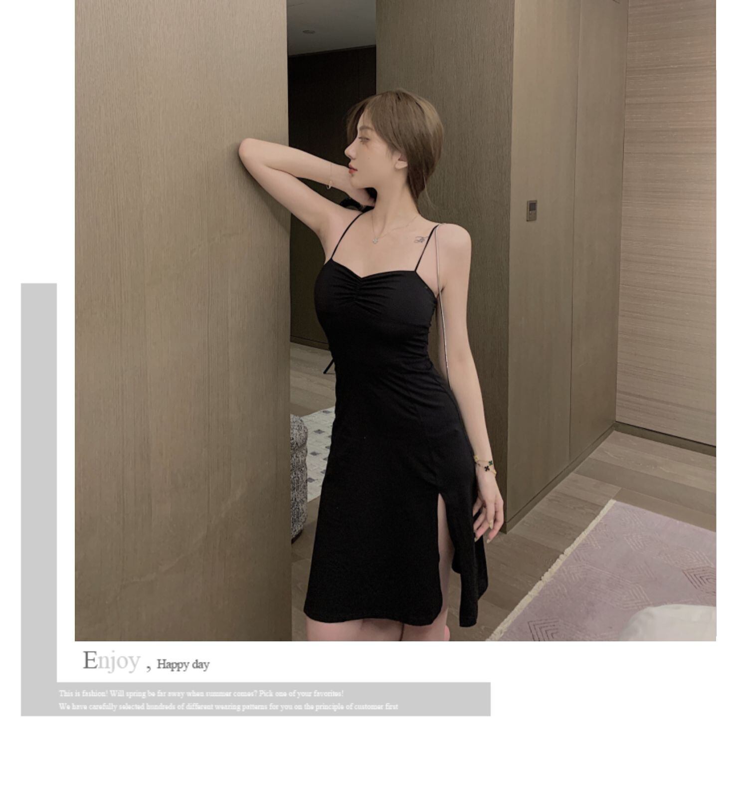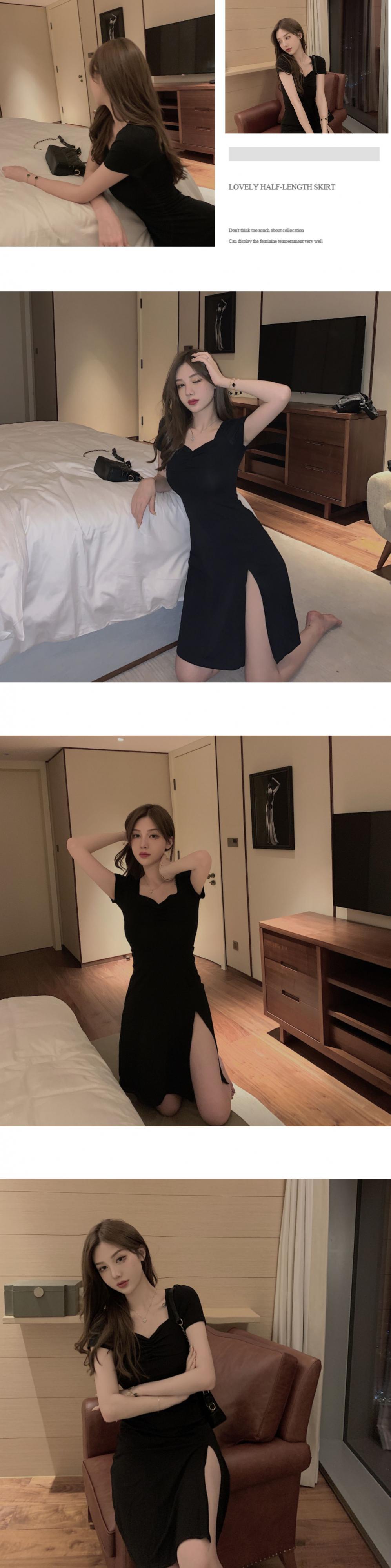 スタンダードスタイルショートスカート サマー薄手ドレス レトロ 夏物 ブラックストロベリース12425702610