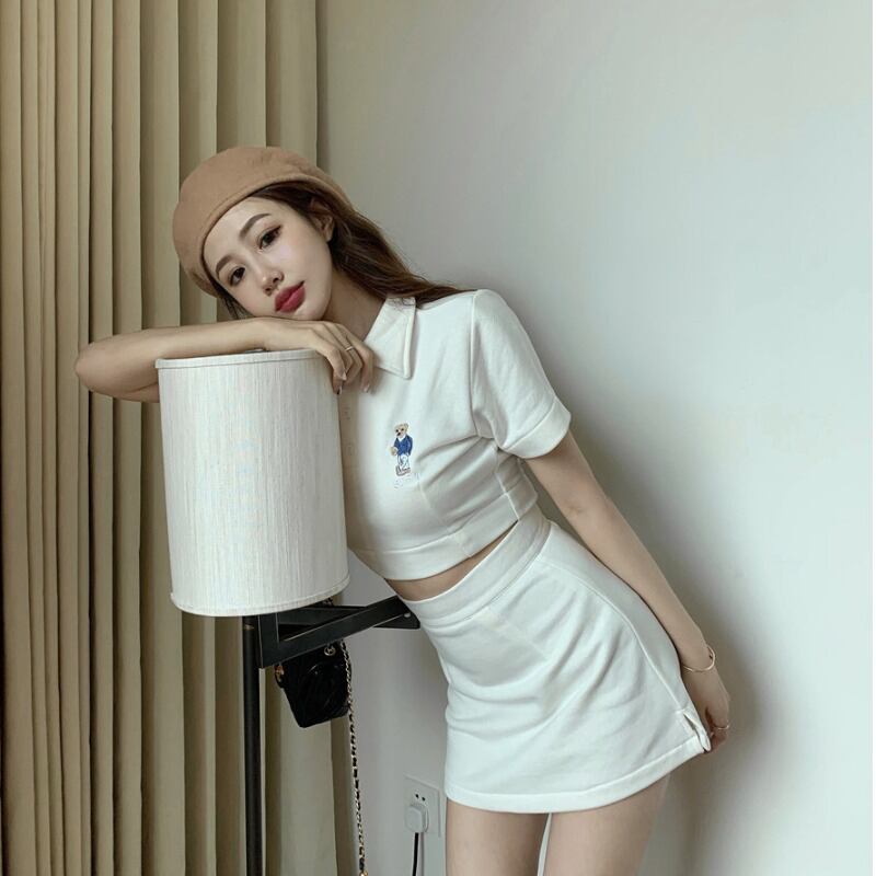 スポーツ白いスーツの女性の夏の西部のファッション半袖2020新しいバッグヒップスカートカジュアルツーピーススーツ ブラックストロベリース47108628153