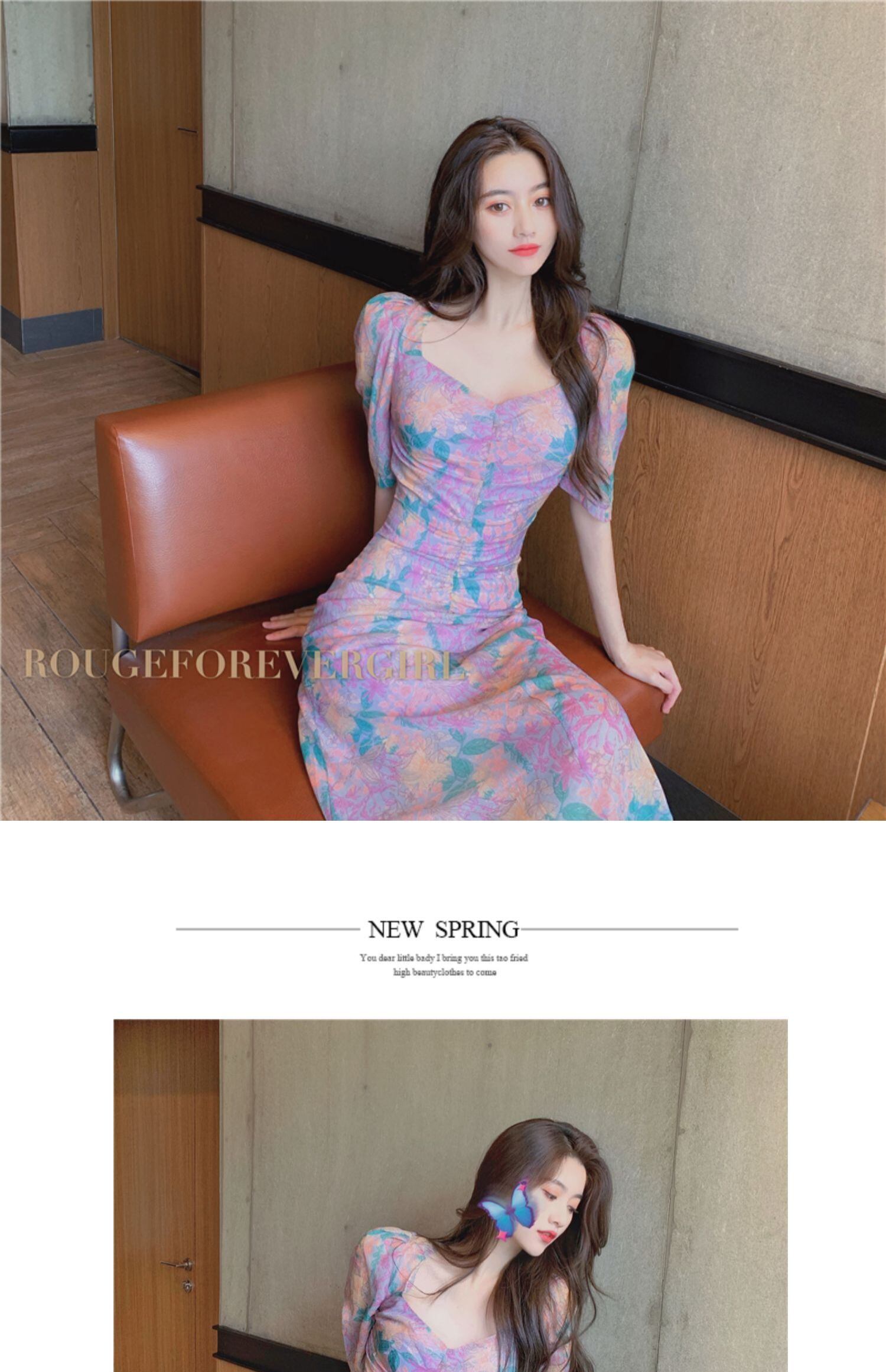 フローラルドレス サマーVネックロングスカート 夏物 花柄 フラワーデザイン ブラックストロベリース16285656767