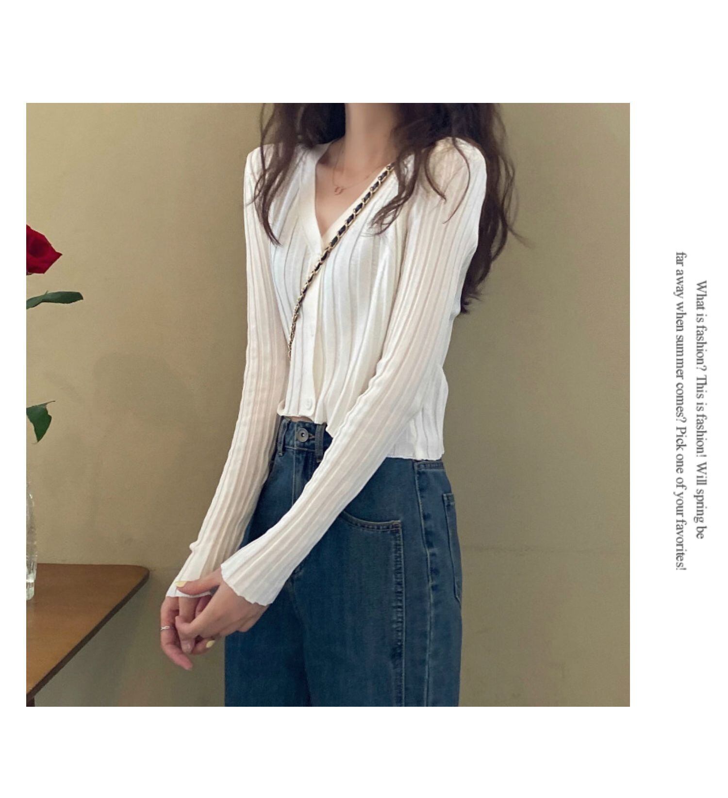 薄手のエアコン付きシャツの女性の夏のジャケットVネック日焼け止めニット長袖ウールカーディガン2020新しいニッチトップ ブラックストロベリース72263884723