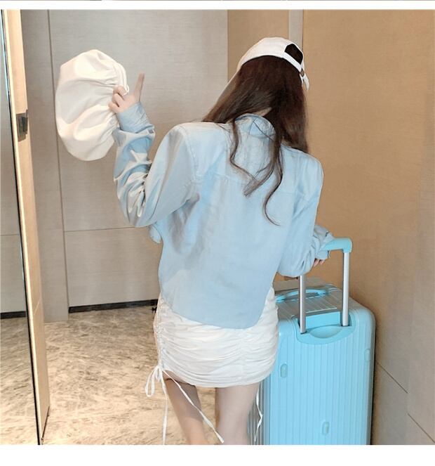 デニムジャケットレディース夏薄手長袖ショート日焼け止めシャツ2020新作オールマッチカーディガントップ ブラックストロベリース33610852134