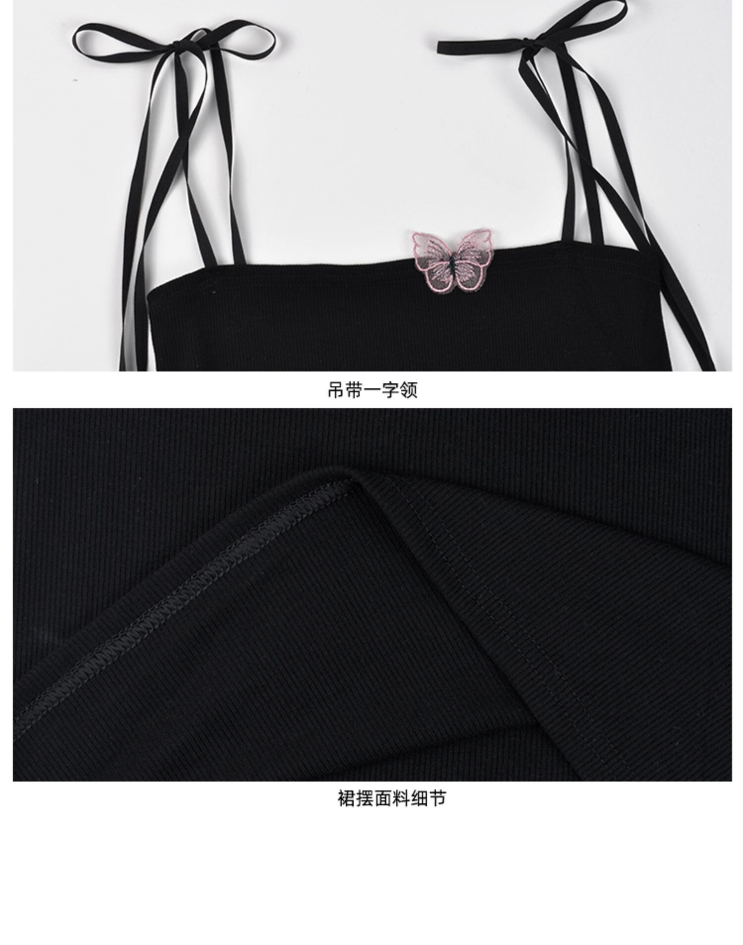 ちょう結びの黒の小さなキャミソールの女性の夏のタイトフィットアウターウェアノースリーブショートジャケット ブラックストロベリース53828569994