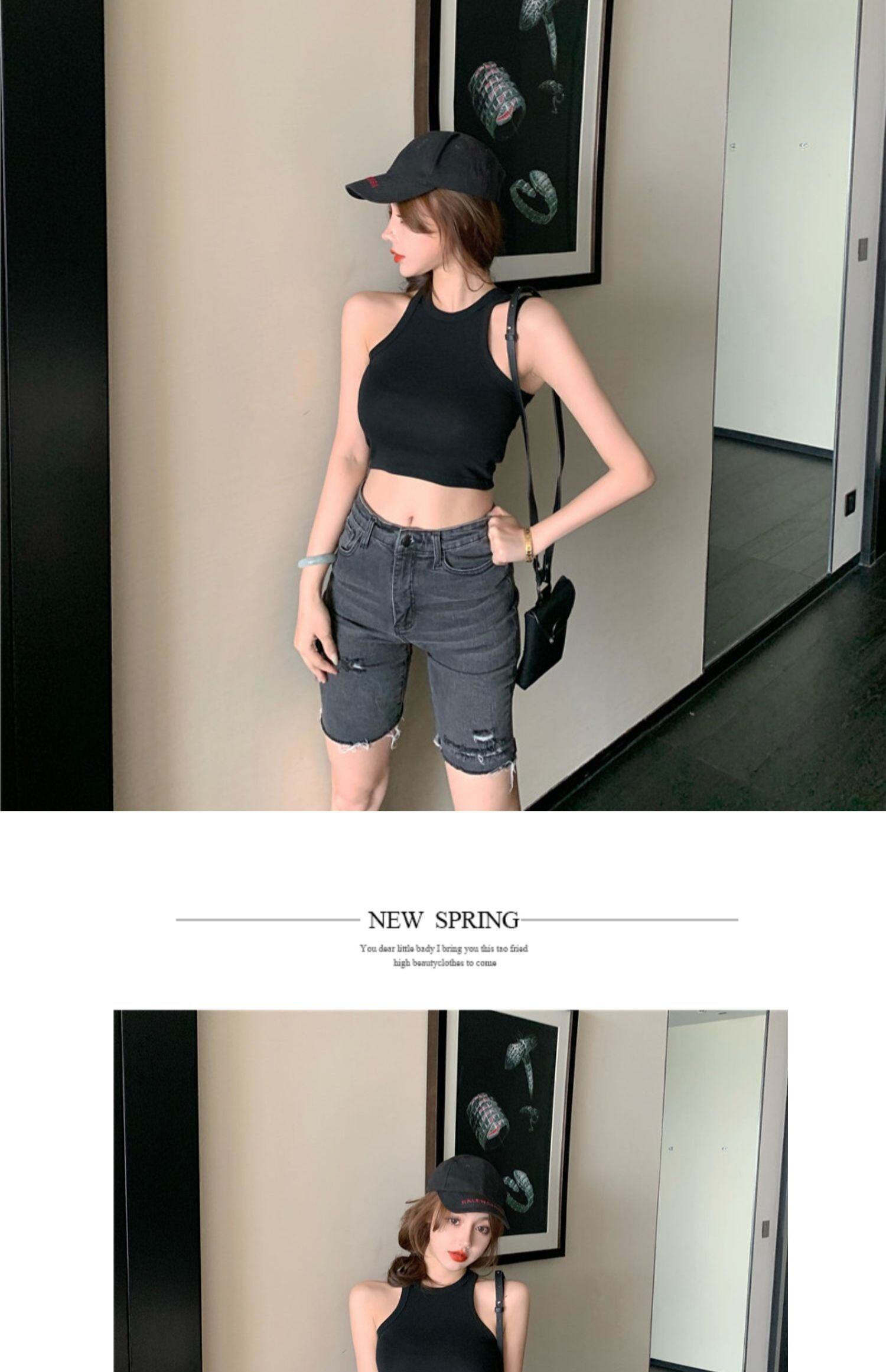 ホルターネックラウンドネックノースリーブキャミソールレディースサマーアイスシルク薄手アウターセクシートップスボトムスシャツ ブラックストロベリース30351514437