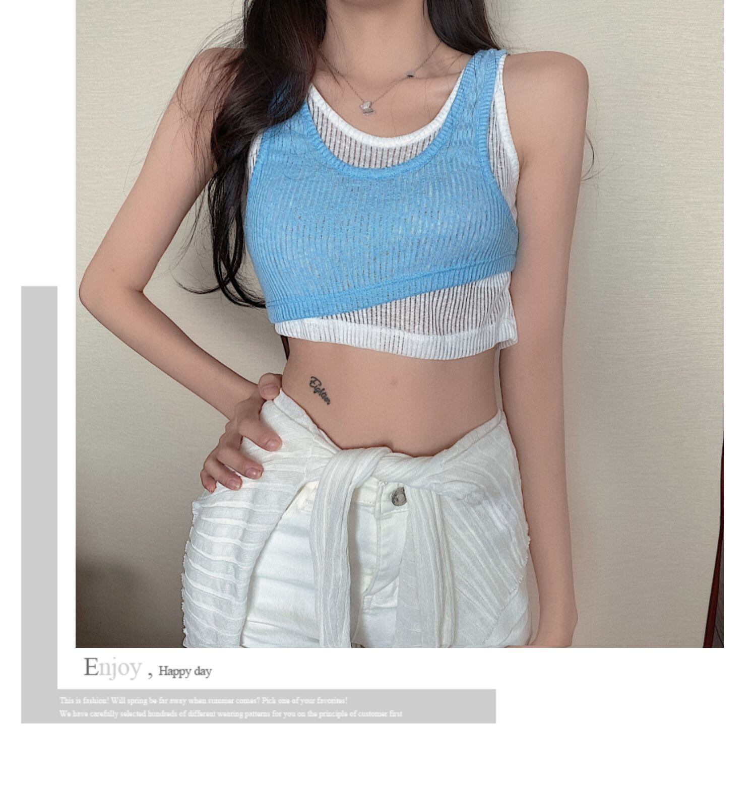夏の対照的な小さなサスペンダー女性の偽の2枚 ブラックストロベリース16742363567