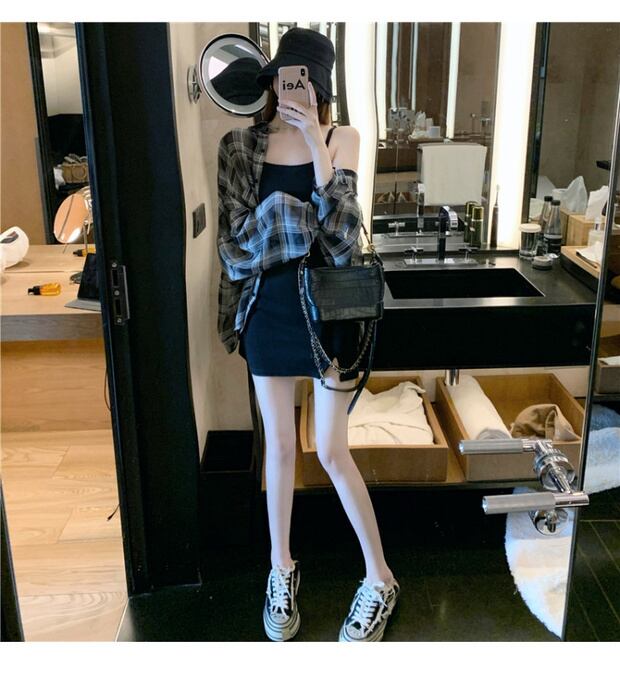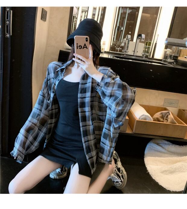 緩い格子縞の長袖シャツの女性の夏の薄い日焼け止めシャツ2020新しい中間丈のトップコートのバージョン ブラックストロベリース96463632976