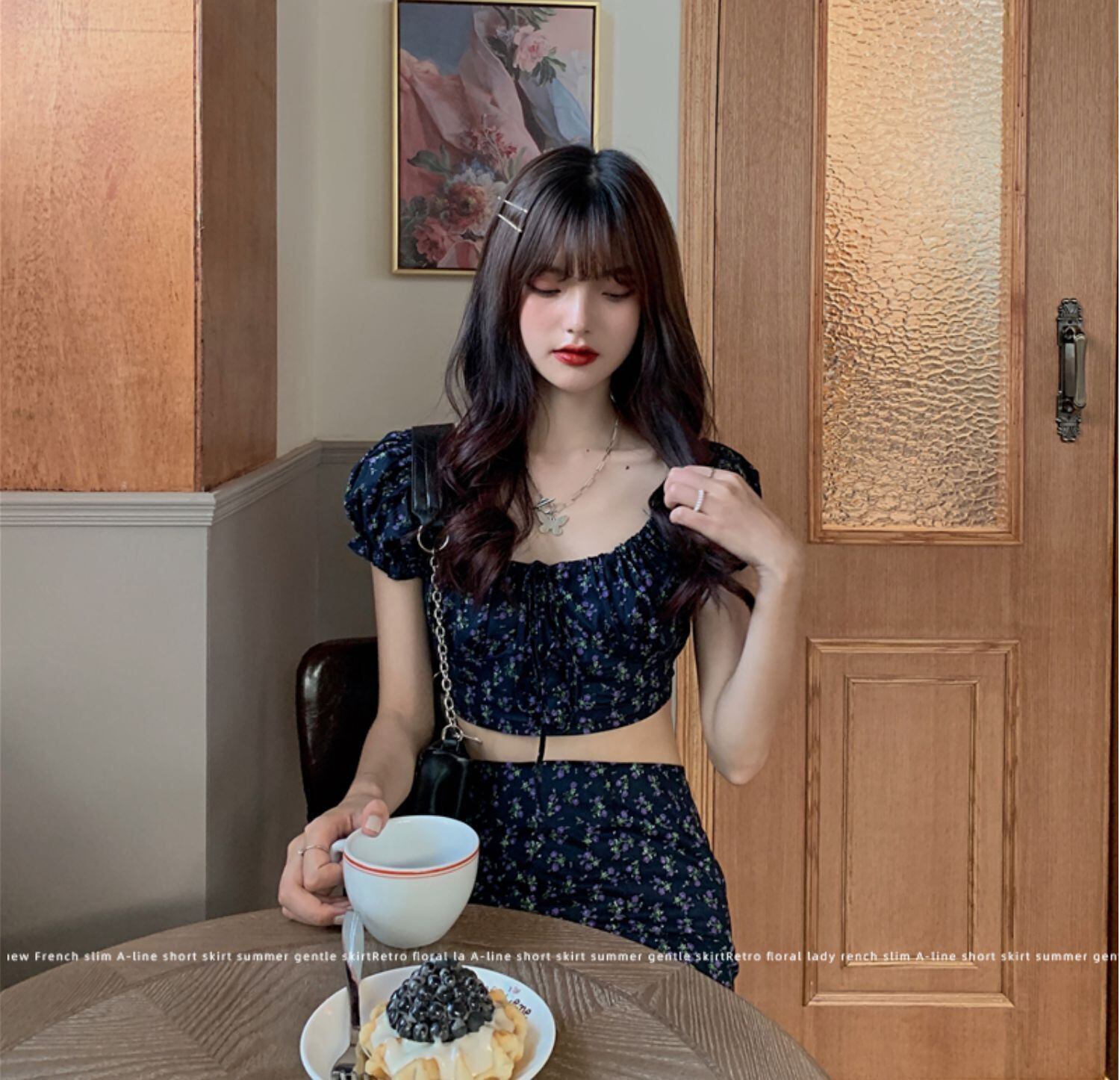 フレンチパフスリーブシャツレディースサマーレース半袖シャツ2020新作センスニッチスリムトップス ブラックストロベリース14244648025