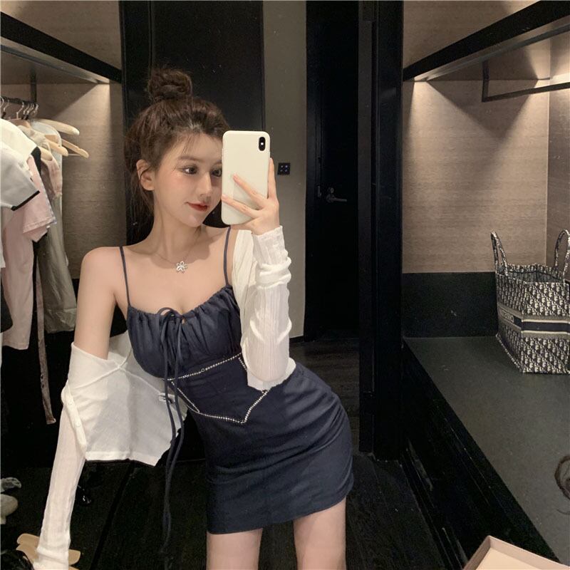 フレンチスリングドレス女性の夏の1単語襟ラインストーンストラップレス気質ショートスカート2020新しいノースリーブスカート ブラックストロベリース32851264704