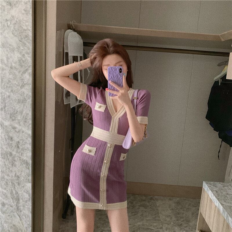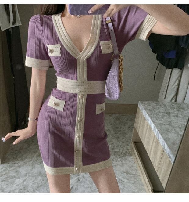 紫色のバッグヒップニットドレス女性の夏2020新しいウエストハイウエストスリムショートスカートセクシーな気質スカート ブラックストロベリース51432413448