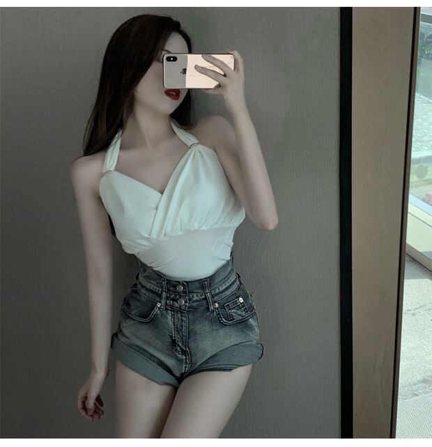 ハンギングネックホワイトノースリーブスモールサスペンダーレディース夏2020新しいスタイルのセクシーなベストショートトップとアウター ブラックストロベリース9839654547
