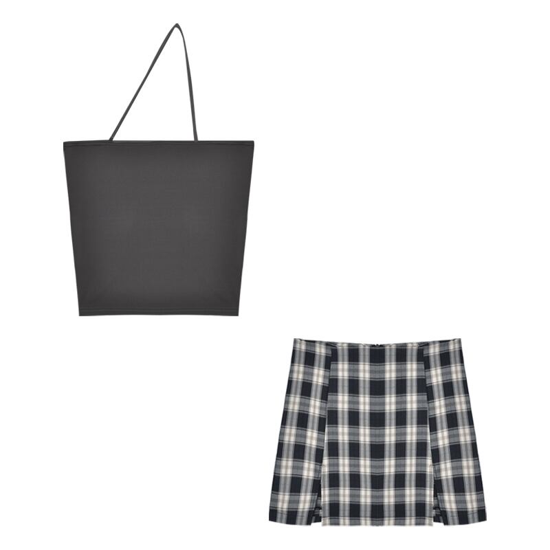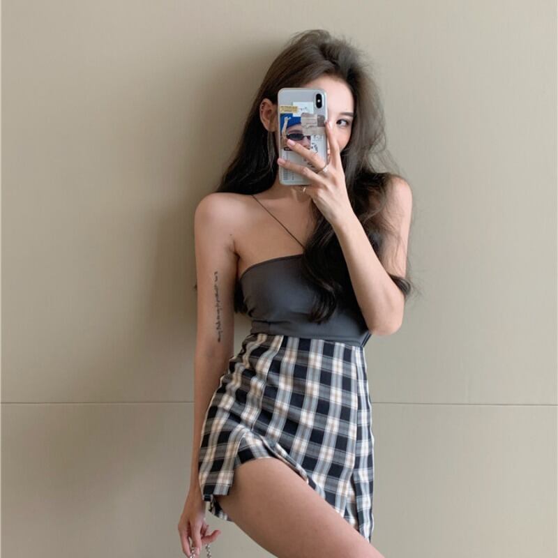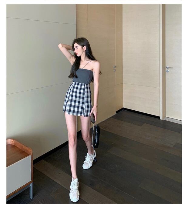 格子柄スカート サマーハイウェストショート薄手Aライン 夏物 ブラックストロベリース45364688449