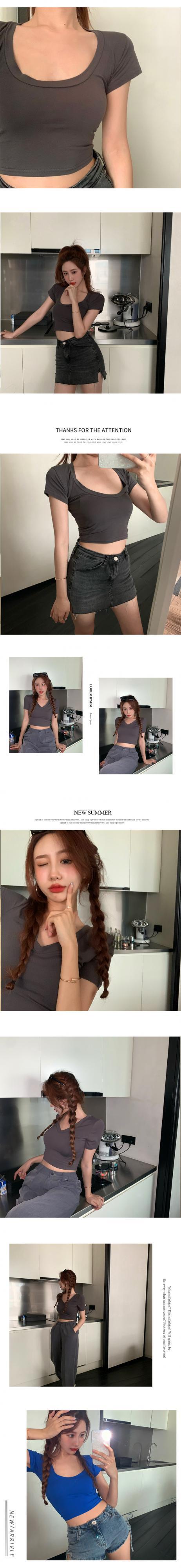 ウェストショートトップス サマーVネックブラックTシャツ 夏物 ブラックストロベリース66807342490