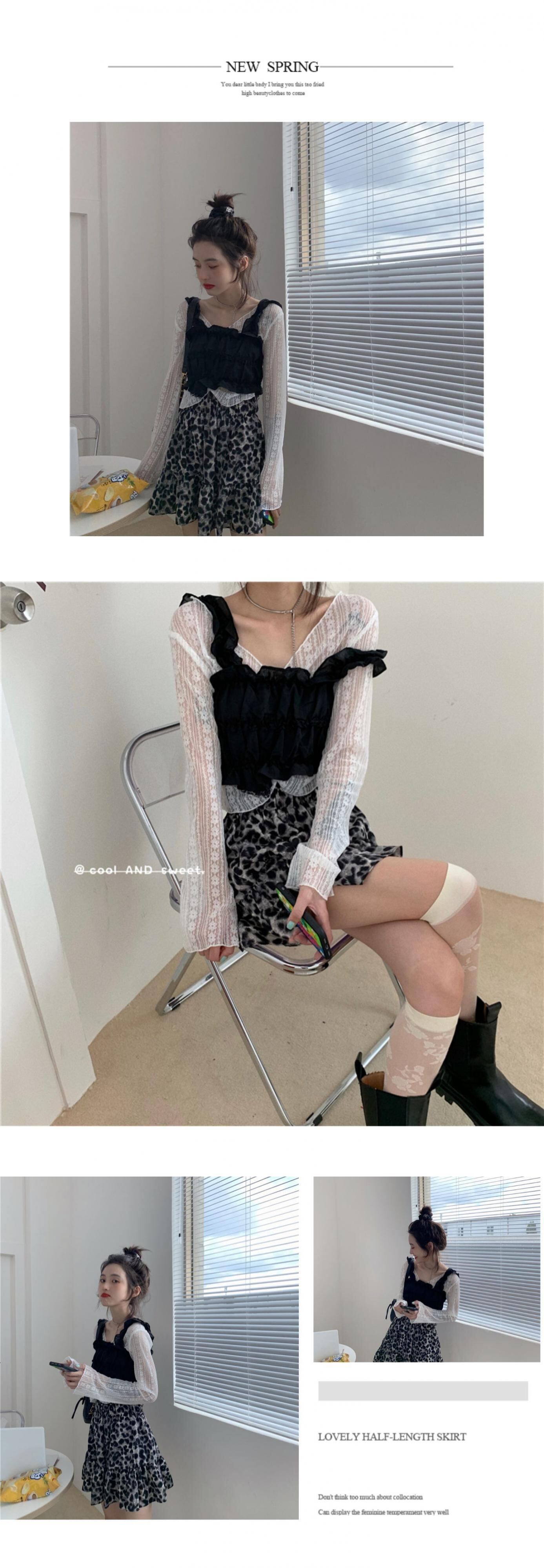 色:レースベース,ブラックサスペンダー,ヒョウスカート