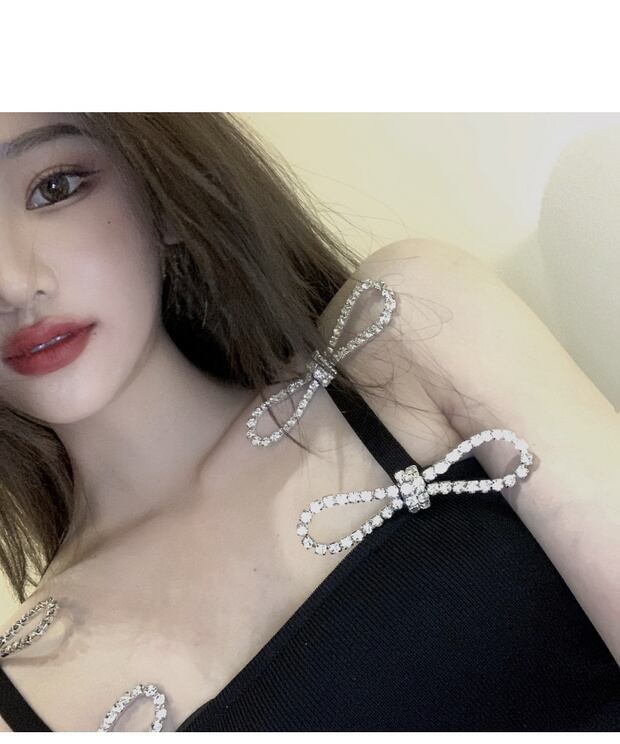 ラインストーンホワイトサマー薄手スタイルノースリーブトップス シャツ リボン 夏物 シルク ブラックストロベリース30898829305