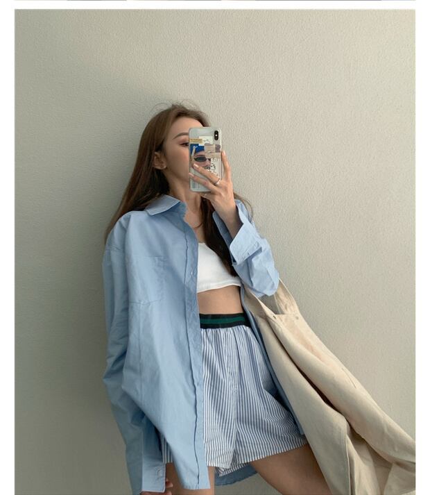 センスの白いシャツの女性の夏の緩い日焼け止め半袖長袖シャツ2020新しいニッチトップ ブラックストロベリース32234827316
