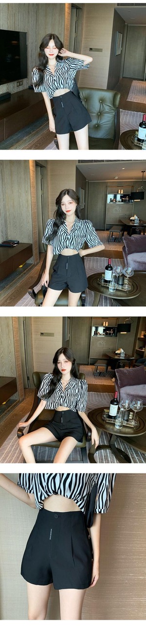スーツショートパンツレディースハイウエストaライン2020夏の新しい薄いカジュアルパンツ緩い、薄いワイドレッグパンツ ブラックストロベリース58596336949