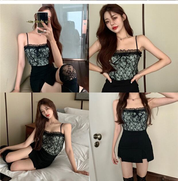 レトロレースメッシュスモールキャミソールレディース夏薄手ノースリーブアウタージャケットボトムスシャツブラックタイド ブラックストロベリース75370193173