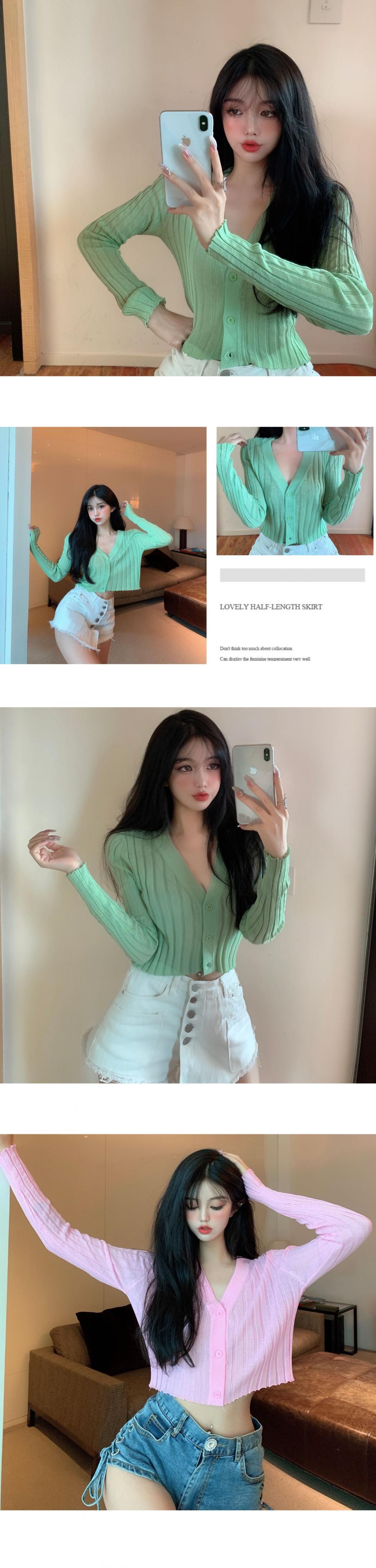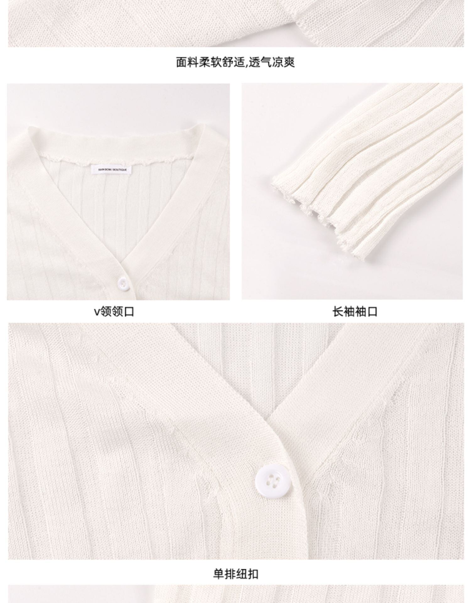 Vネック長袖日焼け止めセーター女性の夏の氷の絹の薄いアウターカーディガンジャケット2020新しいトップ ブラックストロベリース61599724234