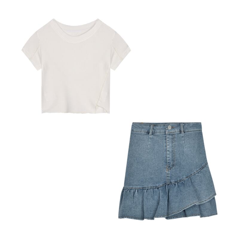 色:白いTシャツ),ライトブルー(デニムスカート)
