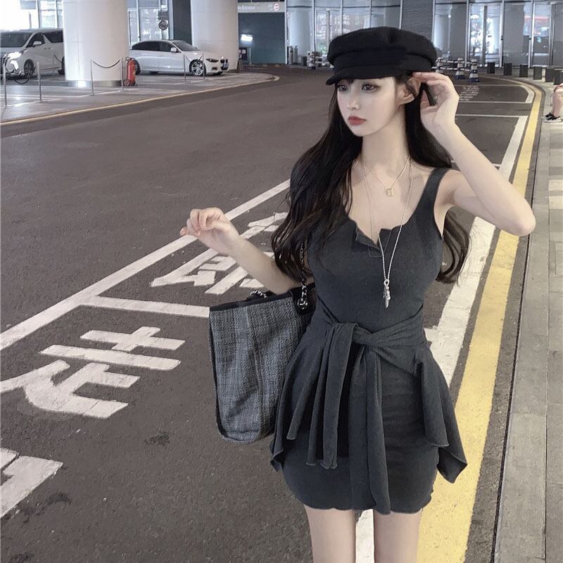 灰色のバッグヒップ小さなサスペンダードレス女性の夏のセクシーな気質スリムスリムショートスカート2020新しいスカート ブラックストロベリース42201256463