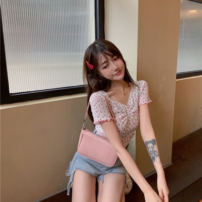 緩い小さな花のステッチのレースのTシャツの女性の夏のショートパンツ潮半袖2020新しいスリムトップのバージョン ブラックストロベリース53033176374