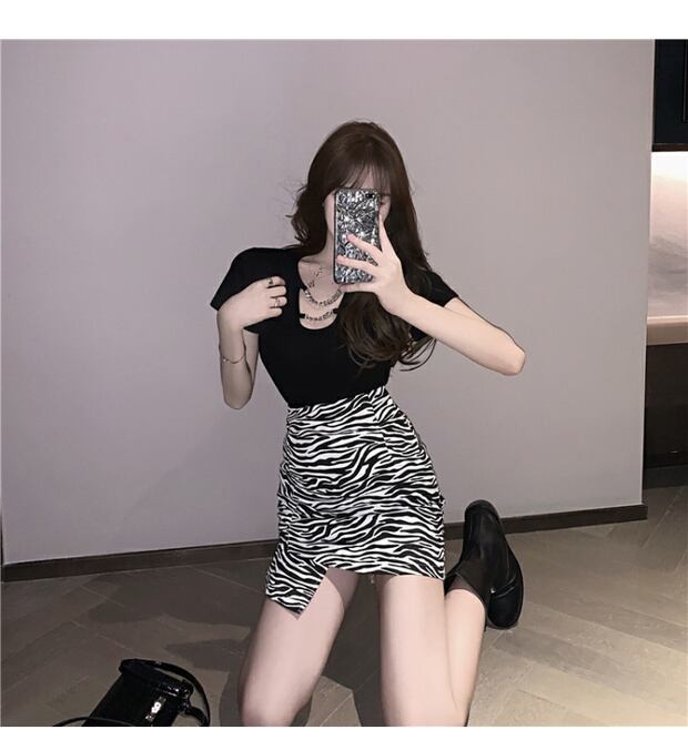 不規則なゼブラ柄スカート女性の夏のハイウエストスリムワンステップショートスカート2020新しいAラインスカート ブラックストロベリース80606900581
