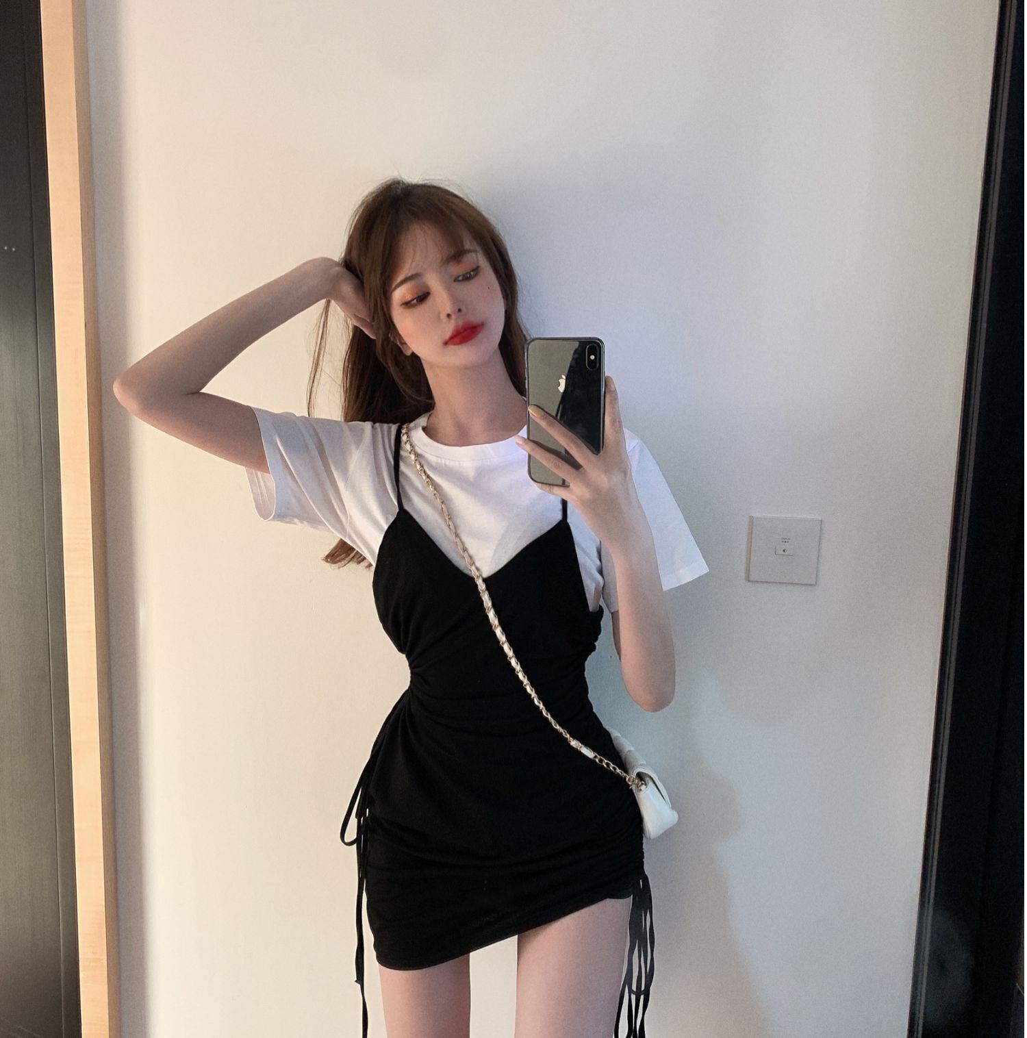 ドレス サマーウェストショートスカート ギャザースリム 夏物 ステッチ ブラックストロベリース63538392038