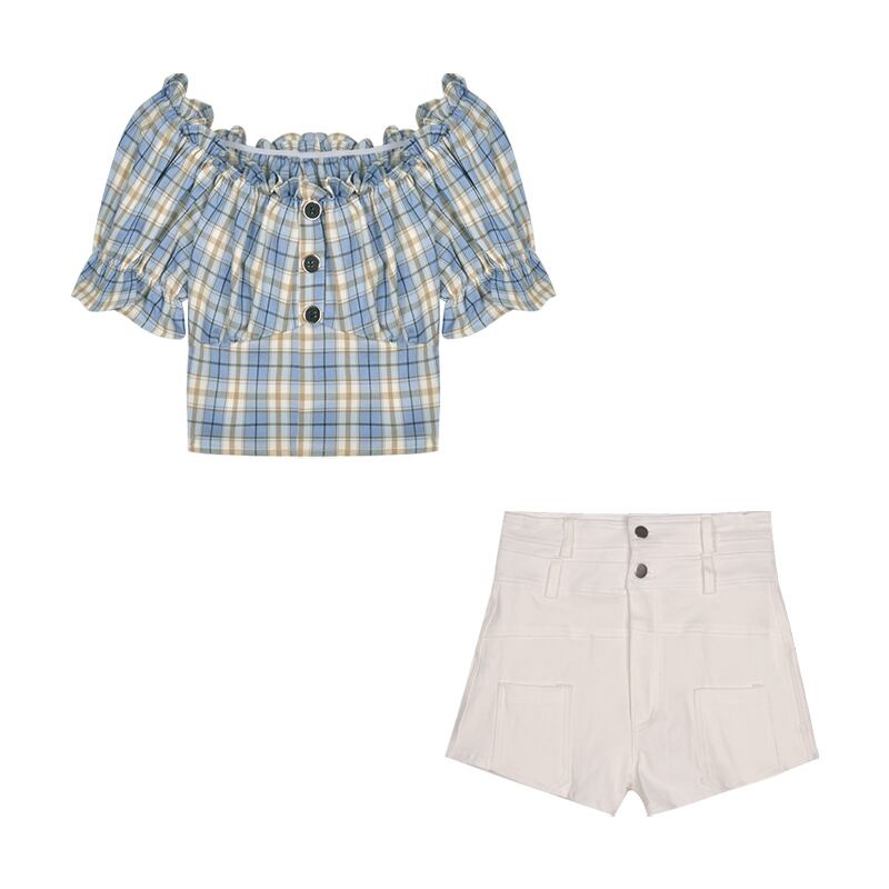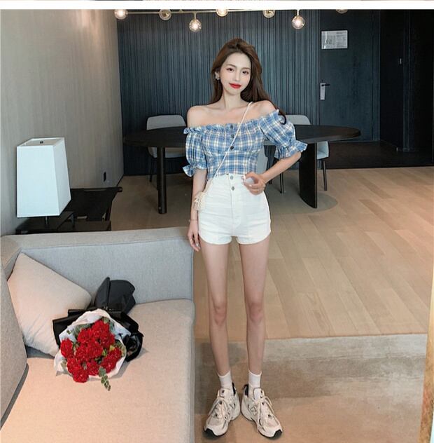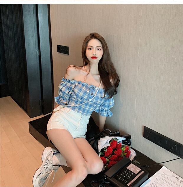 スタイルショルダーパフスリーブシャツ女性の夏のショートオフショルダー半袖2020新しいスリム木製耳トップ ブラックストロベリース43368667859