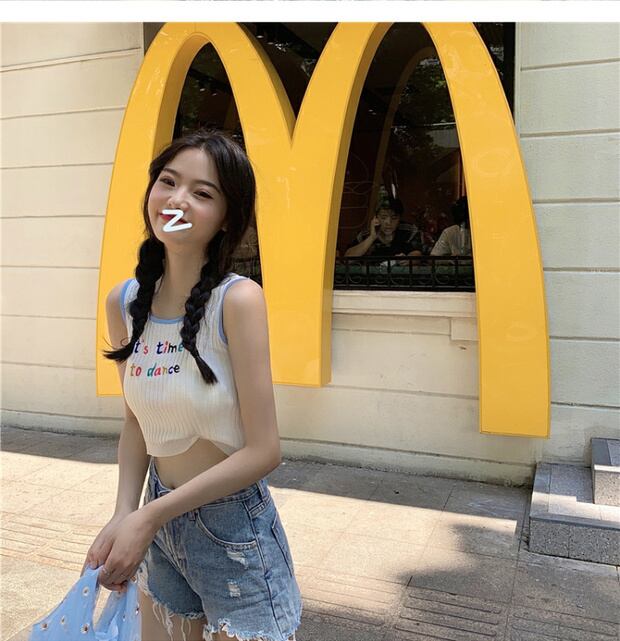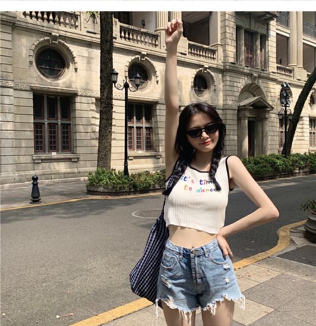 Hyunaスタイルのショートニットノースリーブベスト女性の夏のセクシーなインナーベース薄いアウター小さなスリングトップ ブラックストロベリース66190327826