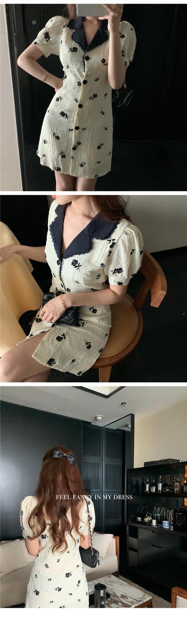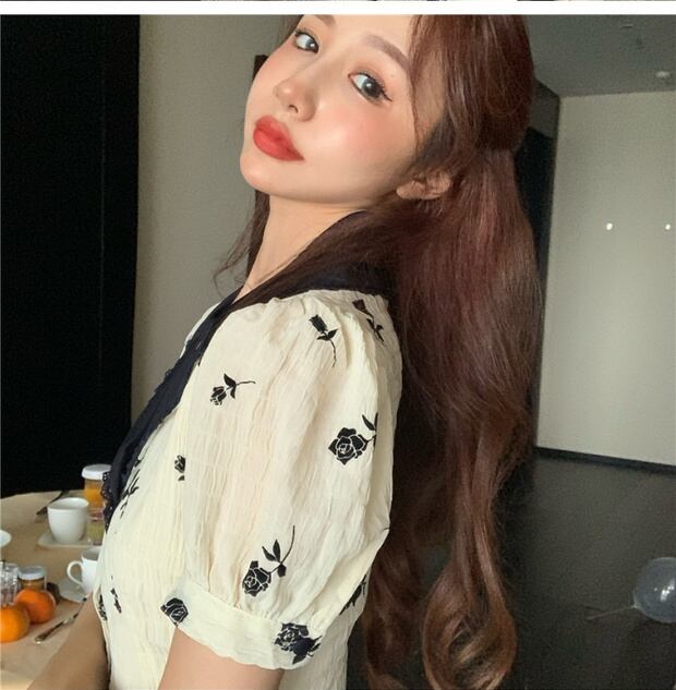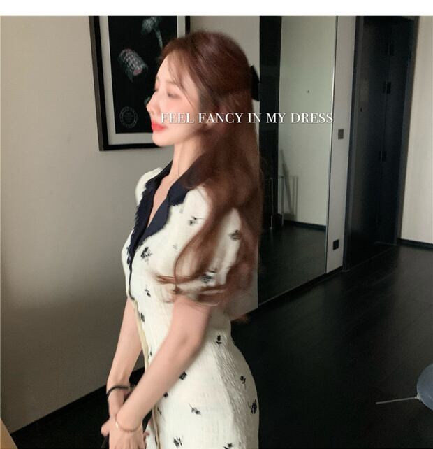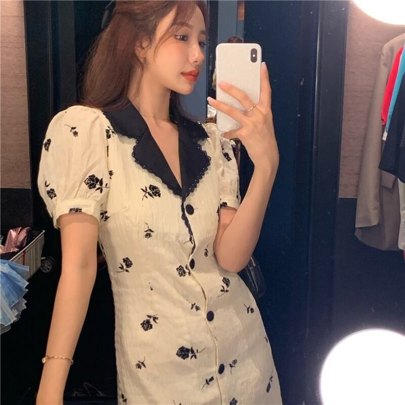 スタイルフローラルドレス レディースサマースタンダード薄手ショートスカート ウェスト レトロ レース 夏物 花柄 ブラックストロベリース68539030944