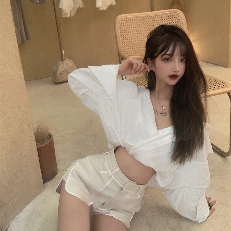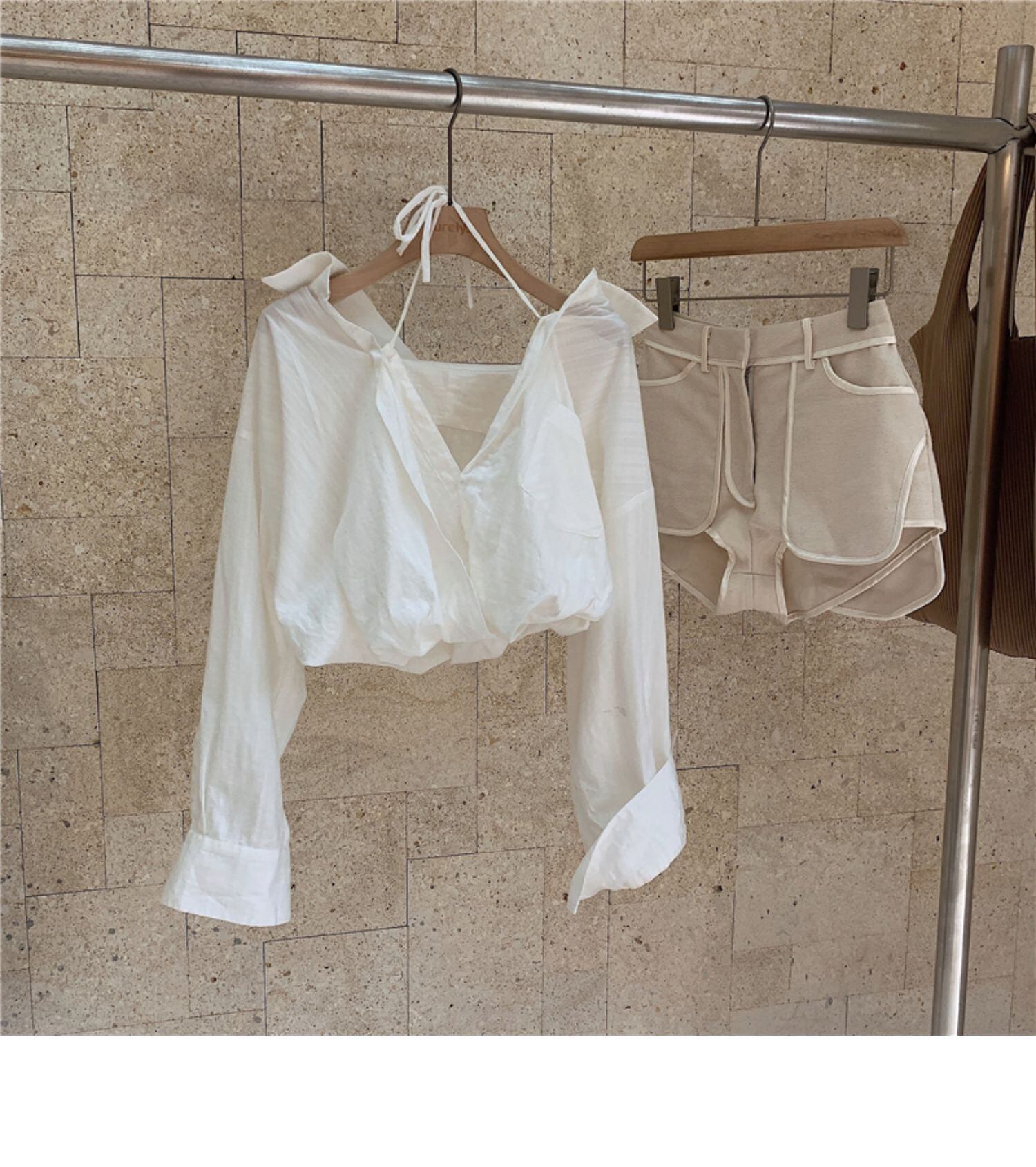 センスサスペンダーシャツレディース夏長袖ショート日焼け止めシャツ2020新しいニッチホワイトトップ ブラックストロベリース86846840658