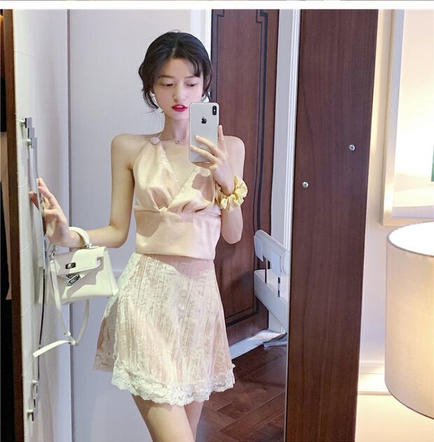 ピンクの気質のスーツの女性の夏のダイヤモンドスリング2020新しいベルベットのレースのハーフレングスのスカートのファッションツーピースのスーツ ブラックストロベリース60312372182