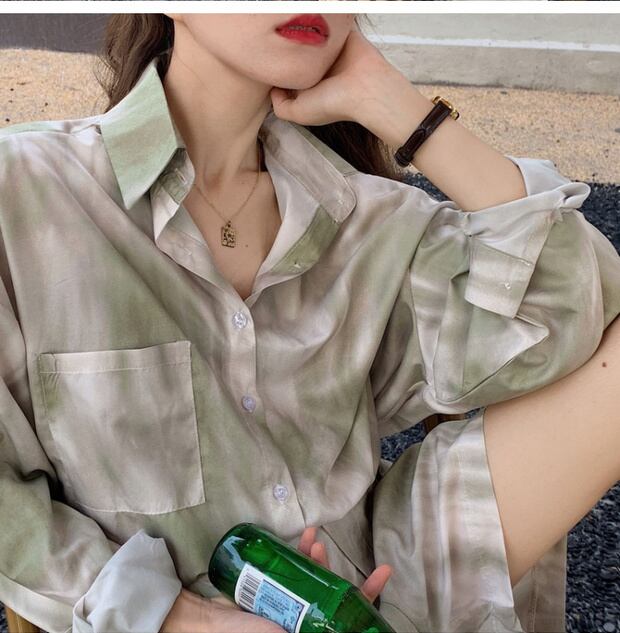レトロな絞り染めカジュアルシャツ女性の夏の薄い長袖シャツ2020新しい緩いニッチトップス ブラックストロベリース73814796657