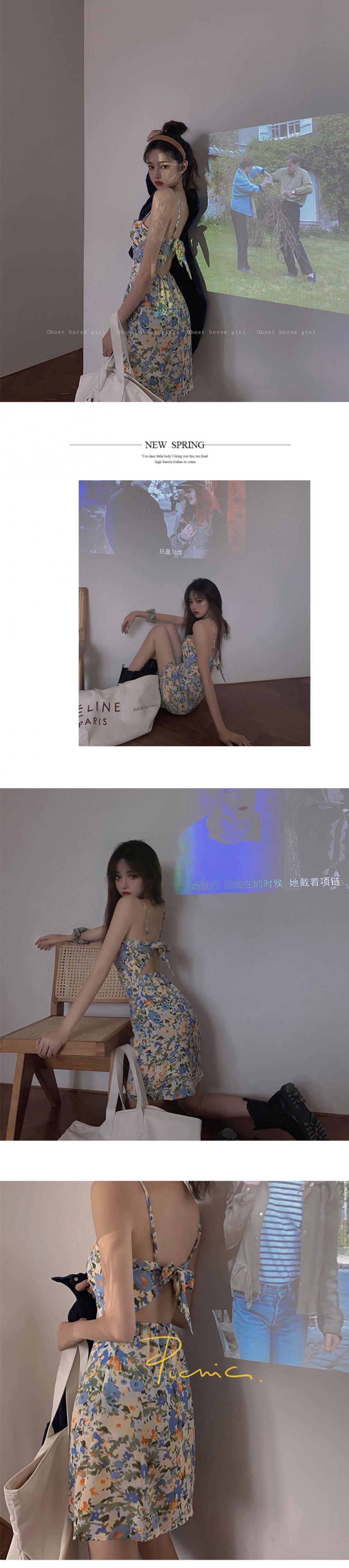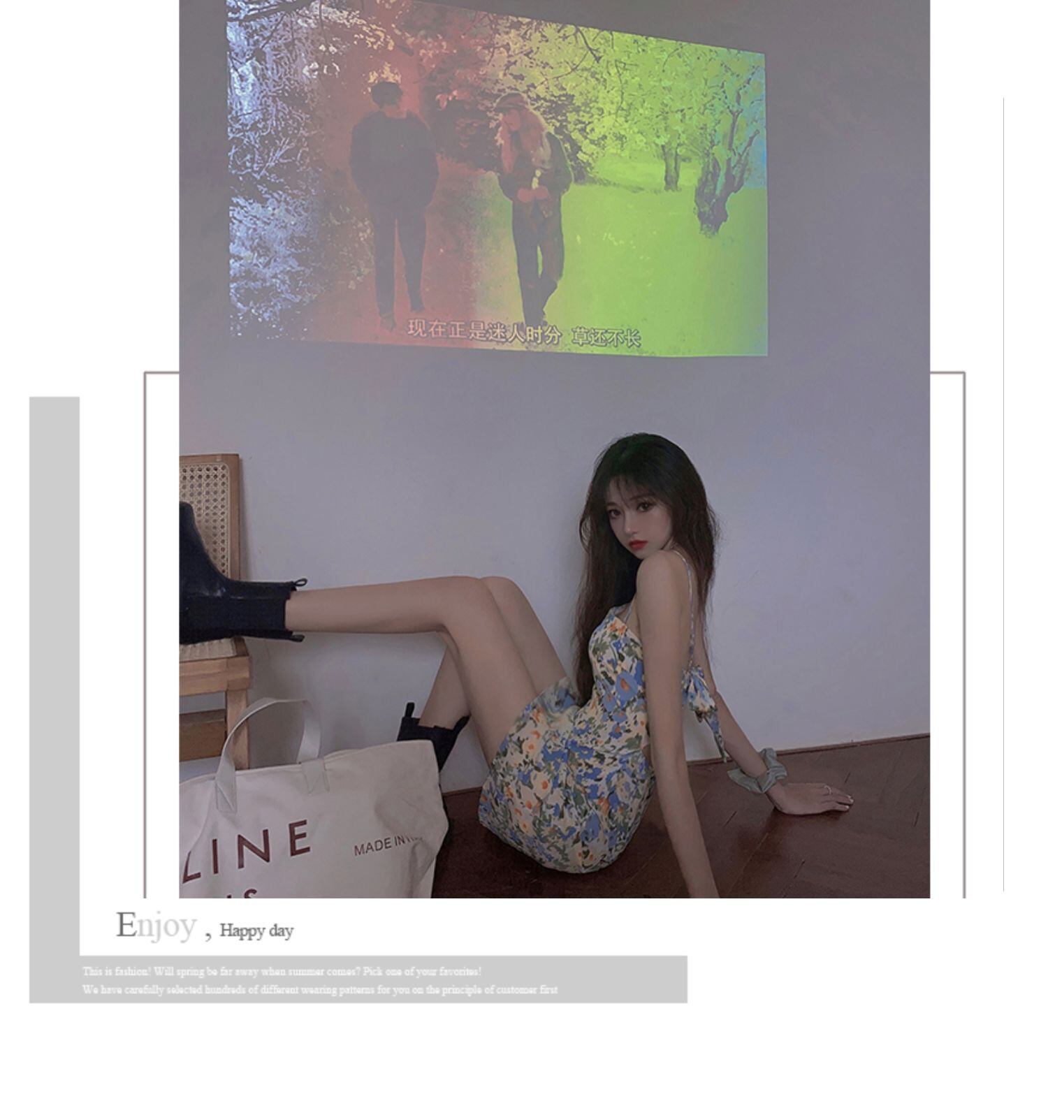 ホルターフレンチフローラルワンショルダースリングドレスレディース夏2020新しいショートスカートウエストスリムスカート ブラックストロベリース32257726215