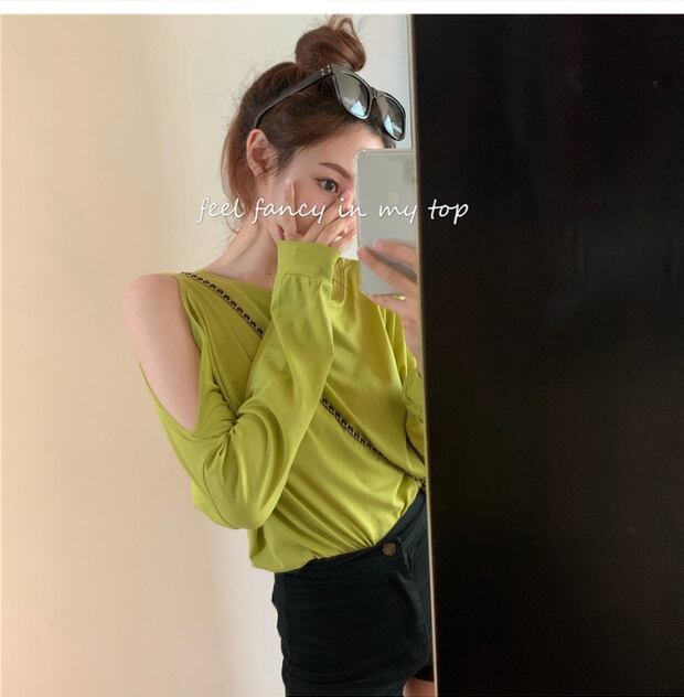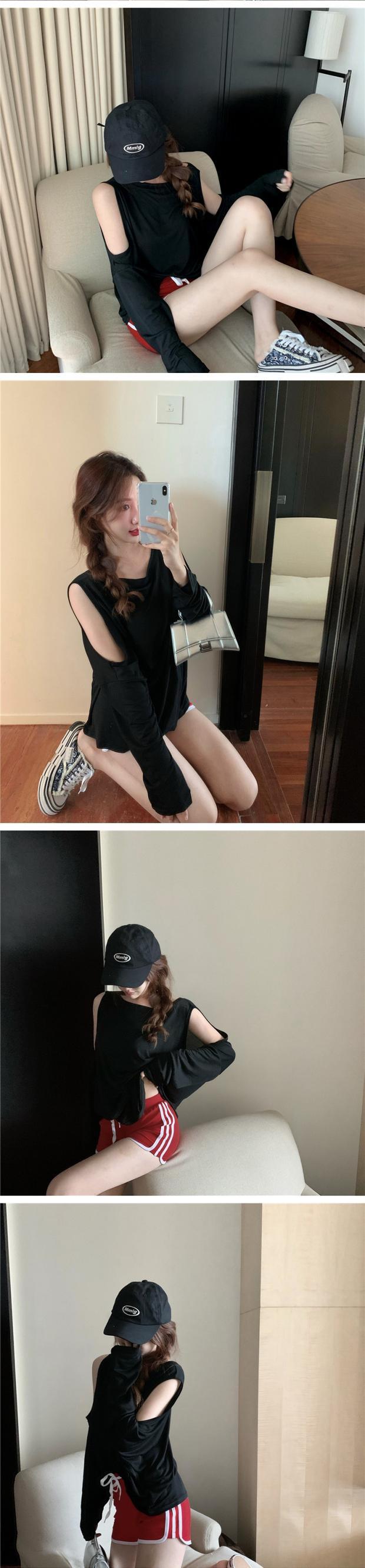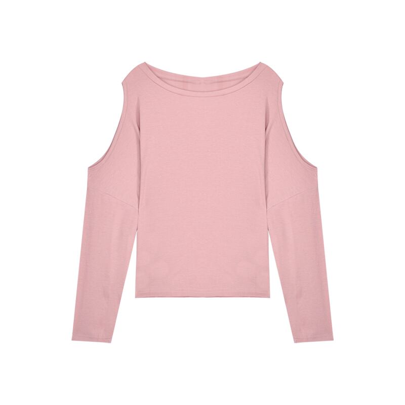 ピンクラウンドネック長袖Tシャツレディースバージョンインスタイド2020夏の新ミドル丈ルーズタイドブランドトップ ブラックストロベリース87735879309
