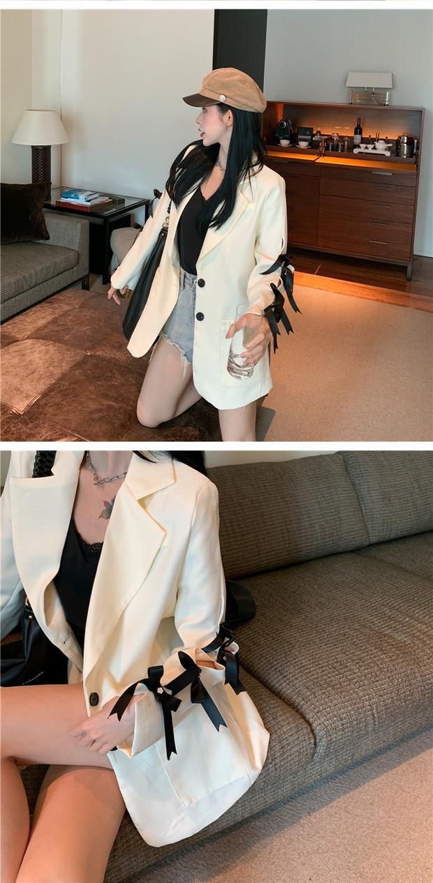 ボウノットルーズスタイルスーツ女性デザインセンスニッチジャケット2020秋新作ホワイトスーツジャケット ブラックストロベリース30095462422