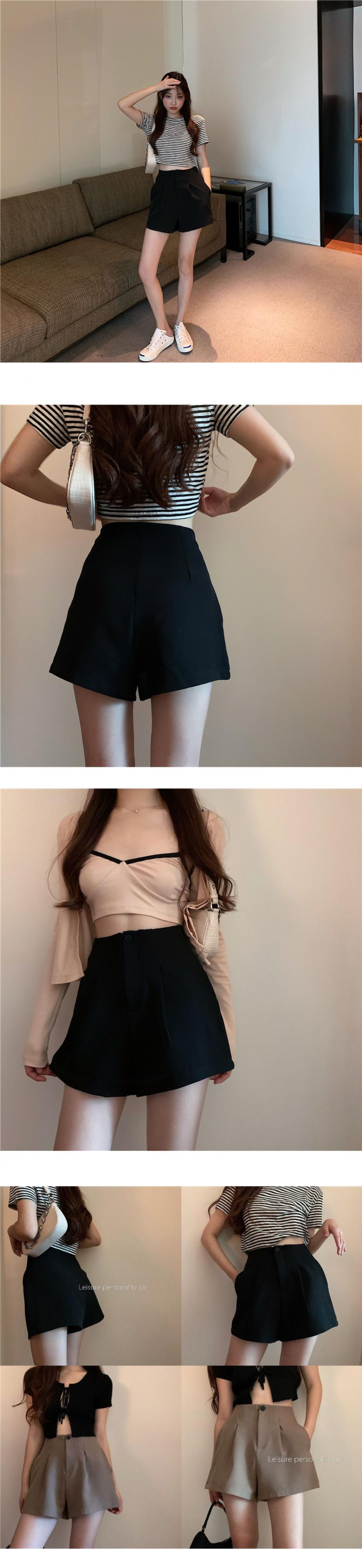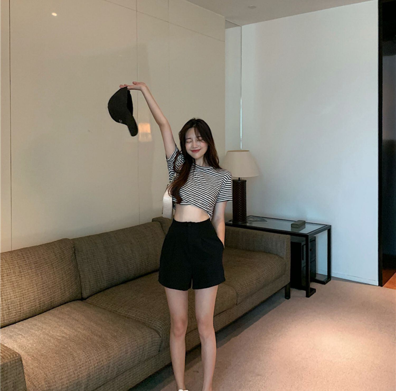 黒のカジュアルスーツパンツ女性の夏の薄いドレープハイウエストショーツ2020新しいスリムワイドレッグルーズパンツ ブラックストロベリース27945305358