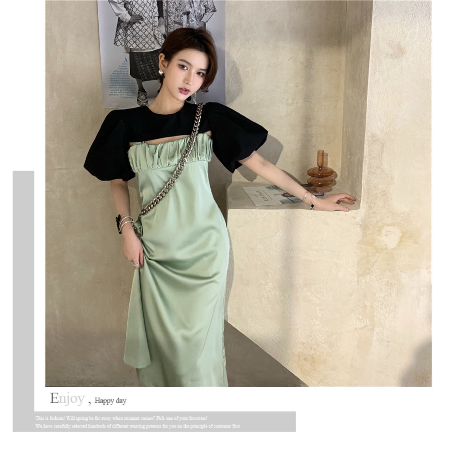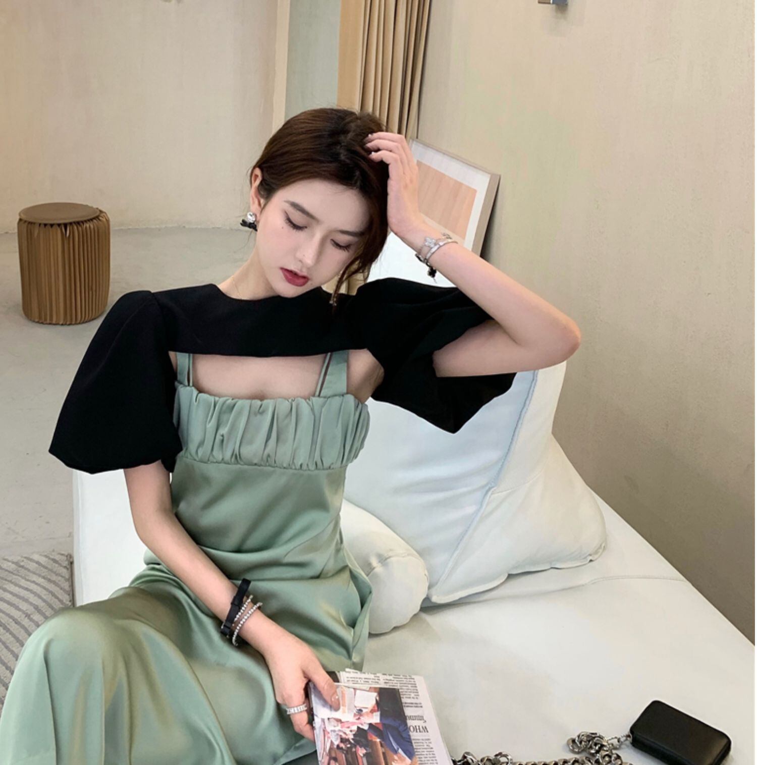 フランスのニッチウエストドレス女性夏スリム気質ロングスカート2020新しいレトログリーンサスペンダースカート ブラックストロベリース19772402244
