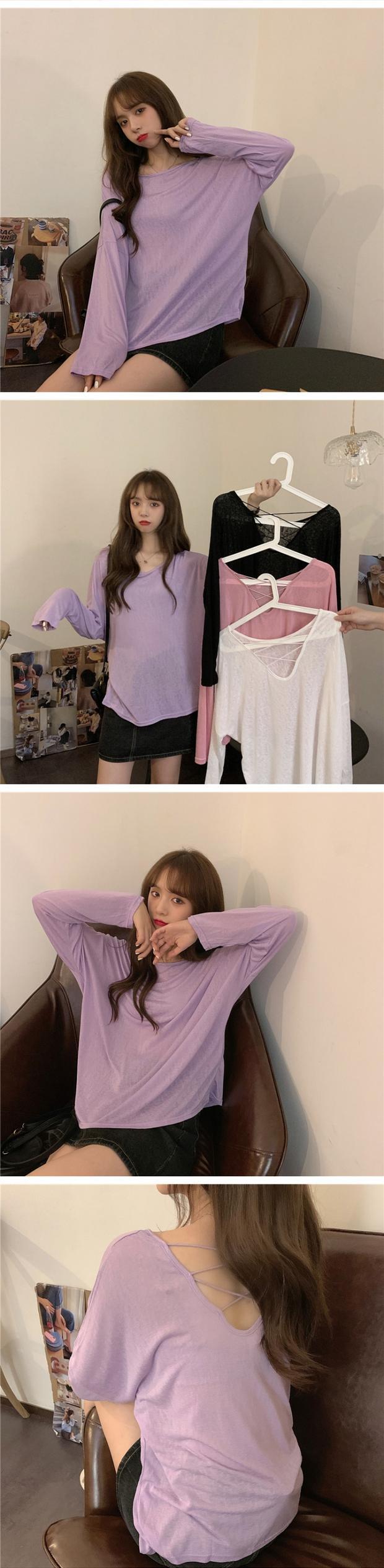 アイスシルクミドル丈Tシャツレディースサマーサンスクリーンブラウスホルターバックシンルーズロングスリーブ2020ニュートップ ブラックストロベリース17736410235