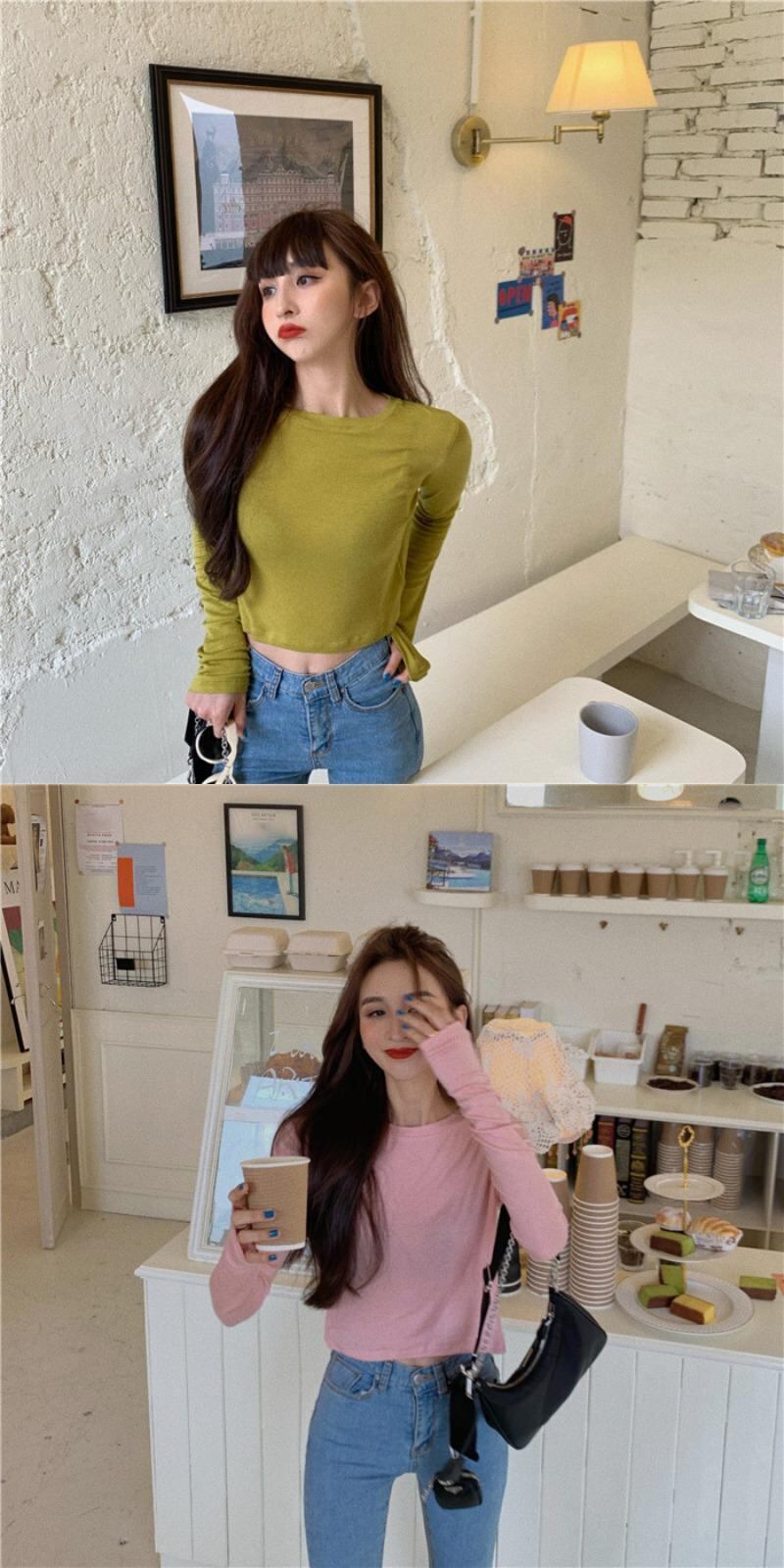 キャンディーカラーの長袖ボトミングシャツ2020年夏新しい薄いトップインタイドマイクロトランスペアレントルーズTシャツ女性 ブラックストロベリース43802007885