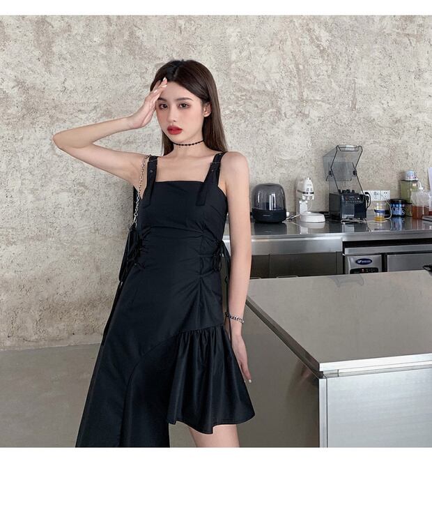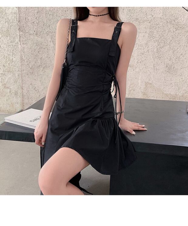 黒の不規則なサスペンダープリンセスドレス女性の夏のプリーツショートスカートリトルブラックドレス2020新しい気質スカート ブラックストロベリース32224662048