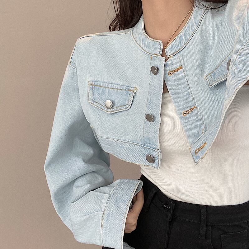 デニムシンショートジャケットレディースサマールーズホロー長袖日焼け止め服2020新しいオールマッチウエスタンスタイルトップ ブラックストロベリース79811428588