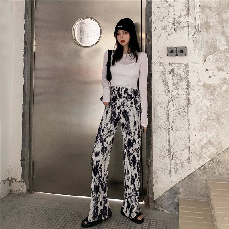 ドレープ薄絞り染めカジュアルパンツレディースサマールーズワイドレッグモップパンツ2020ニューストレートハイウエストパンツ ブラックストロベリース59574148768