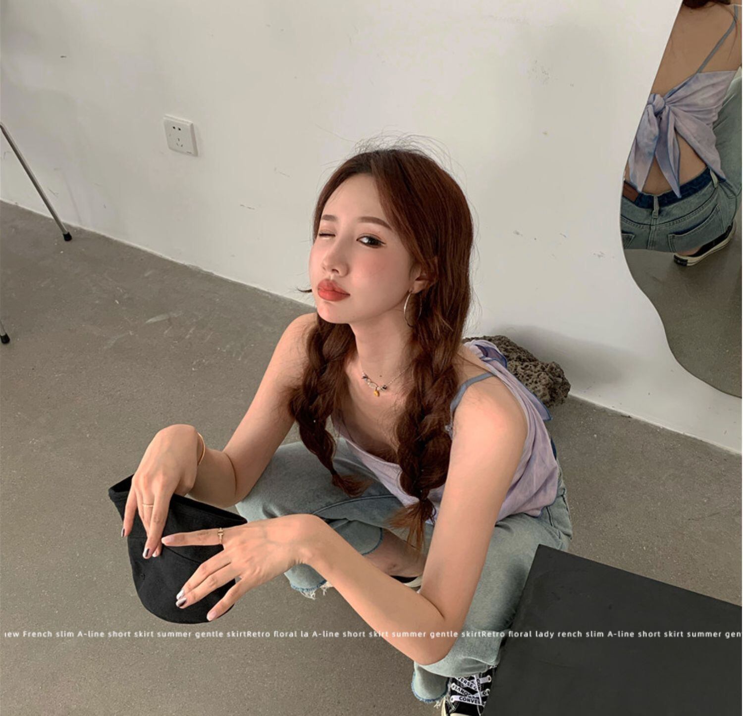 オフショルダーの美しいバックストラップ絞り染めの小さなスリングの女性夏のノースリーブアウターウェアチューブトップベスト2020新しいインナートップ ブラックストロベリース29312416877