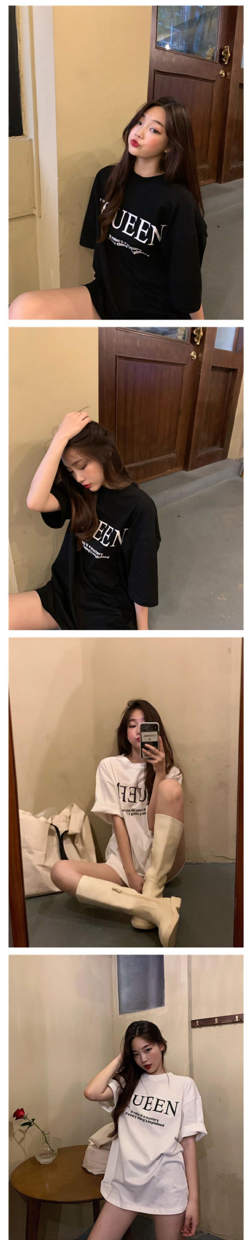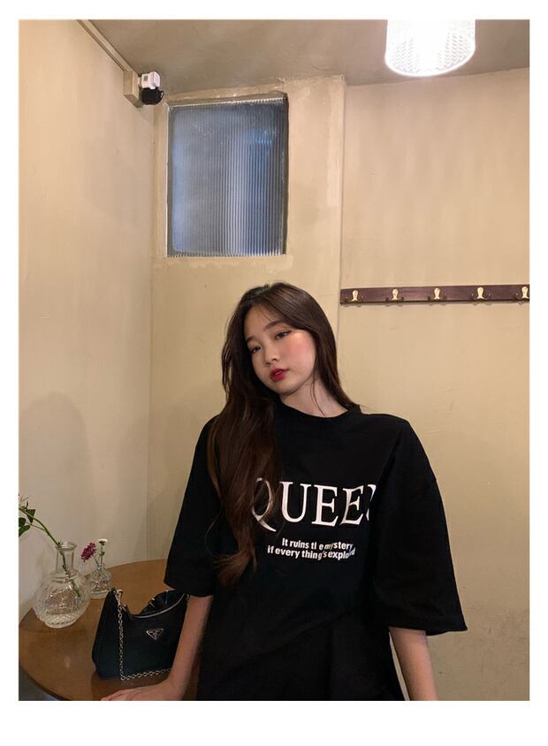 香港スタイルのレトロな黒文字のTシャツ女性の夏のルーズファッション半袖2020新しいミドル丈トップインタイド ブラックストロベリース95910599798