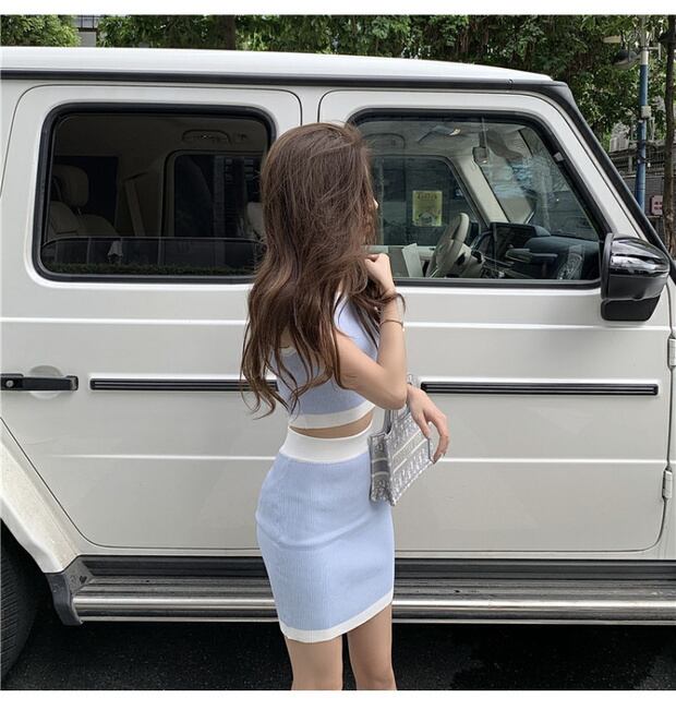 できる洋風ニットスーツ2020新しい女性の夏の気質軽い成熟した風のジャケット+スカートツーピーススーツ ブラックストロベリース38153535942