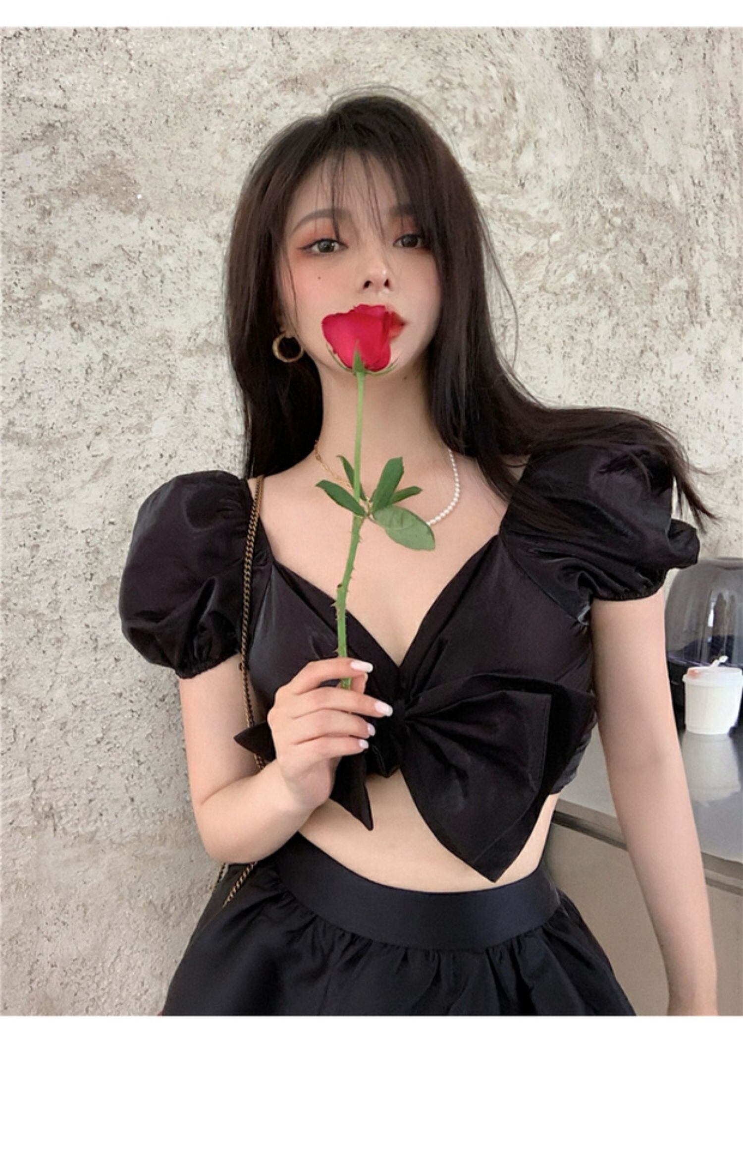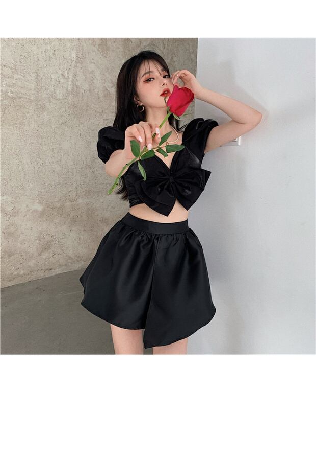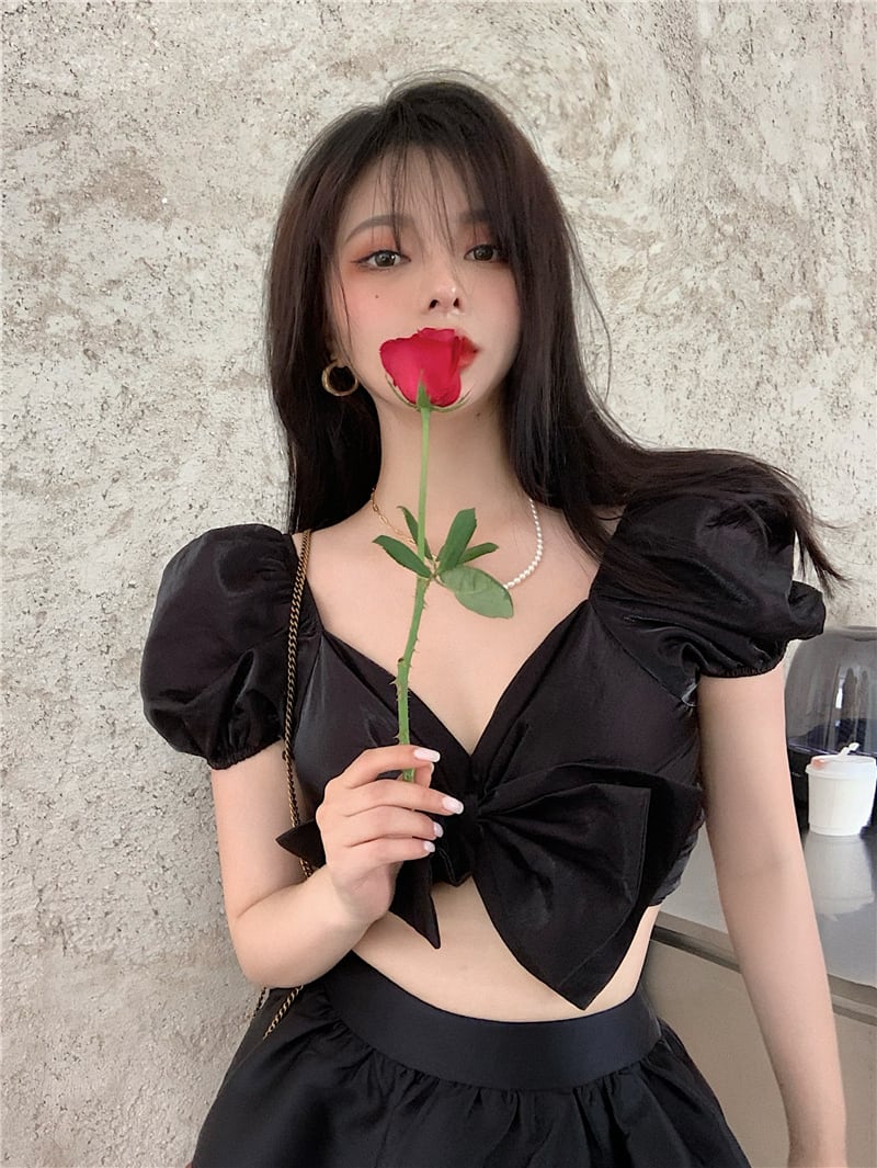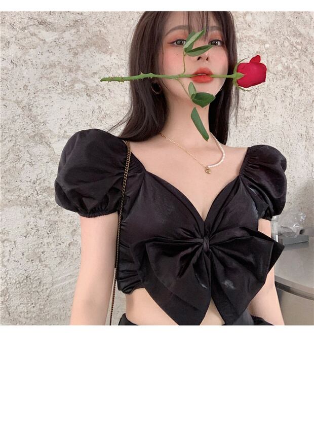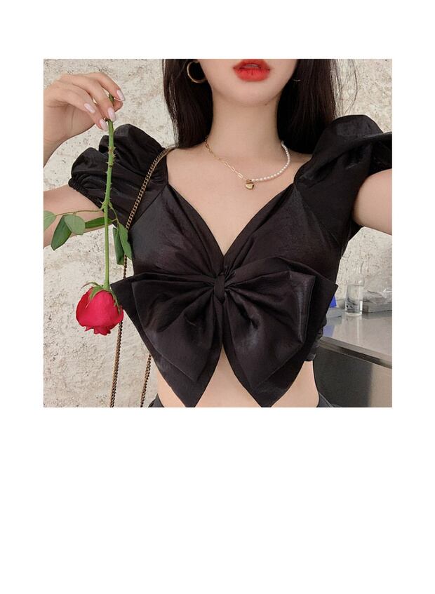 フレンチデザインニッチショートシャツレディースサマーシン2020ニューシャツ半袖ブラックトップ ブラックストロベリース91062641123