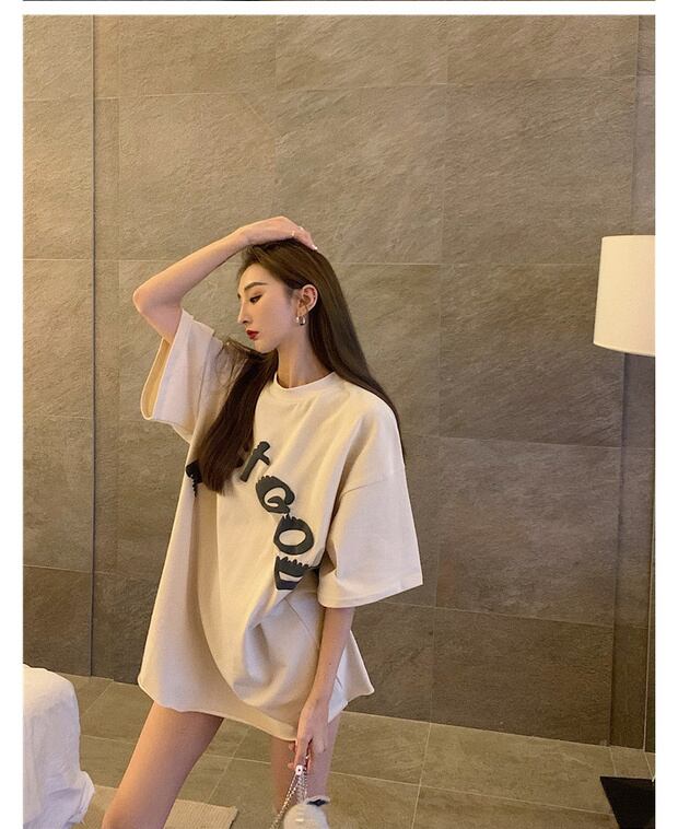 ルーズレタープリントのバージョンホワイトラージバージョンTシャツ女性夏半袖2020新しいミドル丈トップインタイド ブラックストロベリース35025006049